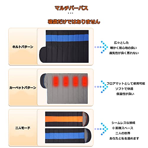 | Winfull 寝袋 冬用 | 3段階 | 210cm×75cm | 55℃ |