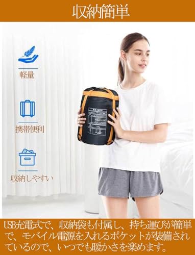| XIAOKUBB 電熱寝袋 | 3段階 | 220cm×75cm | 55℃ |