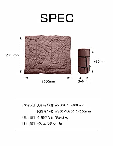 | リコメン堂 寝袋 4人用 家族用 | 4.8kg | 230×200cm | 10℃ | ポリエステル、綿 |