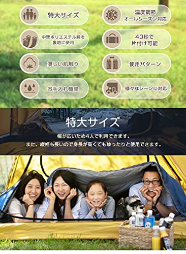 春から夏の使用に最適な4人用の大型寝袋で、4人でもゆったり広々と快適に使用できます。