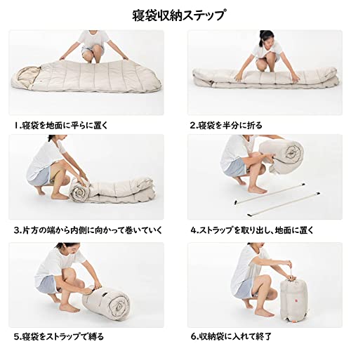 また、寝袋は収納袋に収まらず片付けに手間取ることも多いですが、この商品は丸めて袋を被せるだけで簡単に片付けできる便利な設計です。