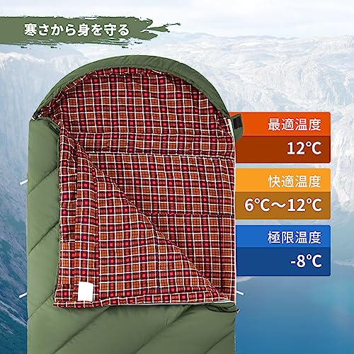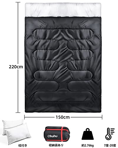 Ohuhu 寝袋 2人用 封筒型2.95kg150×220cmコットン、210Tポリエステルシェル7℃〜20℃