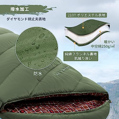 GEERTOP 冬用 シュラフ ワイドサイズ フランネル2kg100×220cmポリエステル、フランネル、コットン−5℃〜15℃
