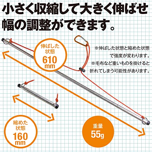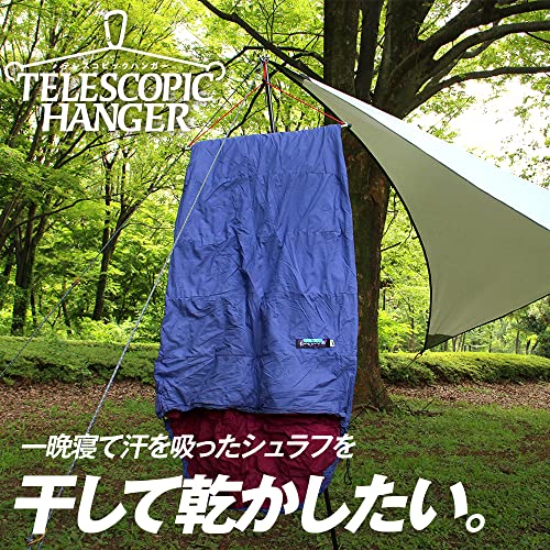 最小時15cm最大時60cmと幅広くサイズを調節できる、便利な伸縮式の寝袋用ハンガーです。