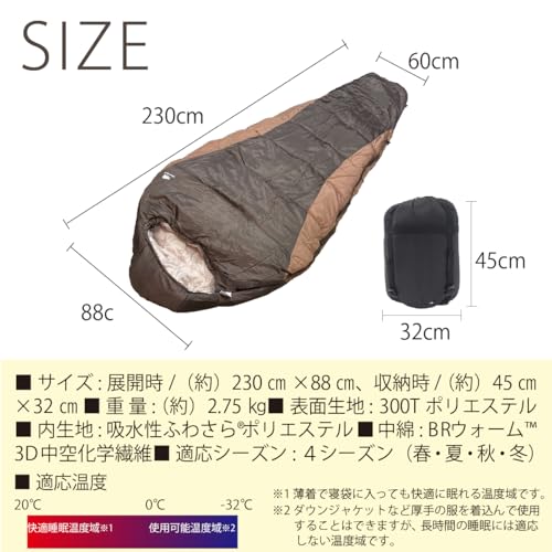 | BearsRock マミー型寝袋 -32℃ | -12℃ | マミー型 | ポリエステル | 45cm×32cm |