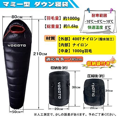 | YOGOTO ダウンシュラフ | 0℃ | マミー型 | ダウン | 38cm×20cm |