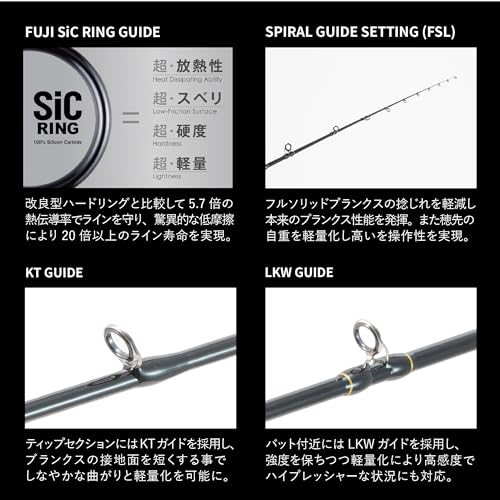 ロッドは細身で高反発、スローテーパー設計で、反発力を活かしてジグをスライドできるのが特徴と言えるでしょう。