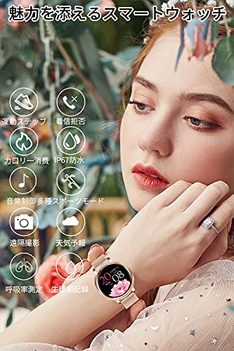 ピンクのデザインが可愛らしい、女性向けのスマートウォッチです。
