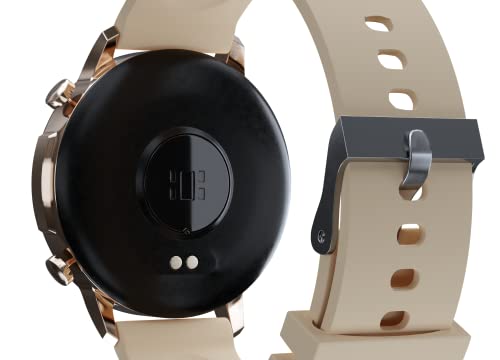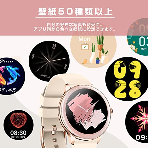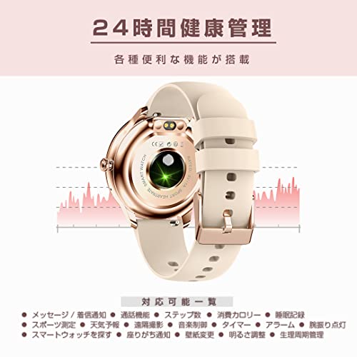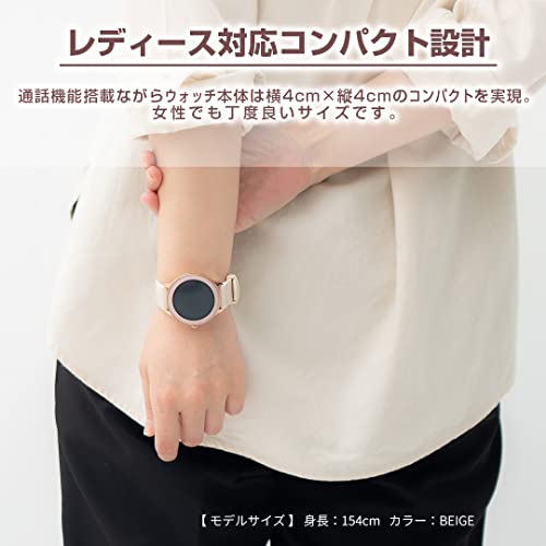日本メーカーのエアリアが販売するラウンド型のスマートウォッチで、ピンクベージュとブラックの2種類から選べます。