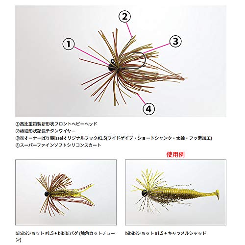 セミフットボール形状のヘッド形状が採用されており、ボトム感知能力と横倒れによる根掛かり防止が出来るモデルとなっている他、意図的に張りの強い太目のラバーを少なく巻くことで、一本一本が微振動を発生し、バスへアピールすることが出来るようになっています。