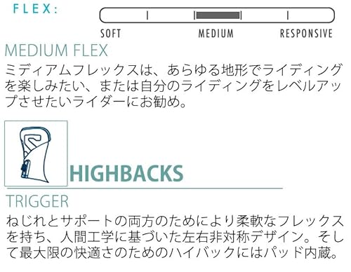 さらに、ミディアムフレックスが採用されていて、あらゆる雪質やライディングスタイルに対応してくれます。