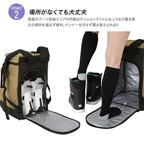 ブーツ収納の内側がクッションマットになっているため、屋外での着替えもインナーや足を汚すことなく行えます。