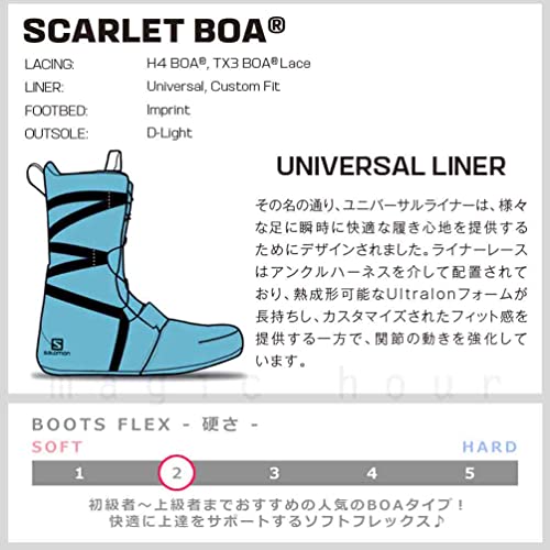 軽くソフトなフレックスで履き心地がよく、初心者や女性でも快適に過ごせます。
