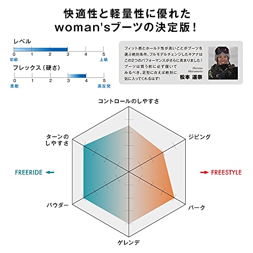 スタイリッシュなデザインと高機能を搭載したモデルは、滑走のクオリティを上げたい全ての女性におすすめのブーツです。