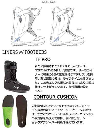 扱いやすいミディアムなフレックスと高い衝撃吸収力、耐久性を兼ね備えた、ハードにスノーボードを楽しめるブーツです。
