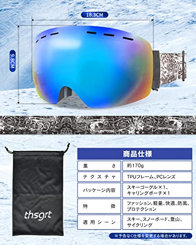 ドイツ製レンズ、thsgrtのブルーゴーグルは球面型タイプです。