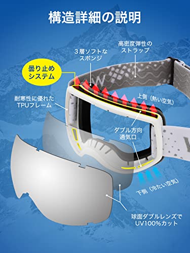 天気が急変してもゴーグル内が曇る心配が少ないため、安心して一日中スノボを楽しめるでしょう。
