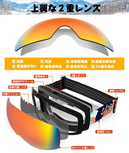 ダブルレンズのゴーグルには、内側と外側のレンズでそれぞれ異なる機能を併せ持っているモデルが多く存在します。