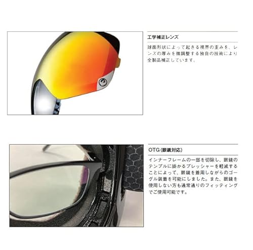ラージサイズで視界も広く、工学補正レンズで球面の形により発生する視界の歪みを補正しています。