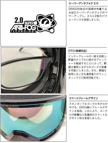 ドラゴンのゴーグルは「スーパーアンチフォグ2.0」という超親水性曇り止め加工をレンズに施しています。
