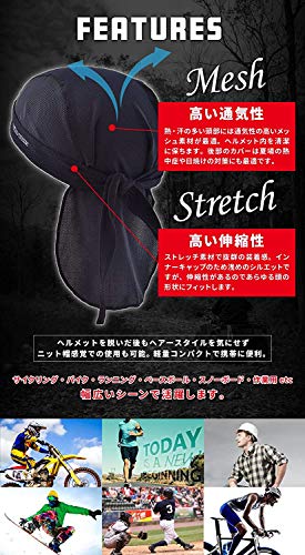 こちらはメッシュ素材で伸縮性もあるバンダナタイプのヘルメットインナーです。