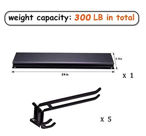 こちらは壁にレール式のラックを取り付けることで使用でき、収納部が5箇所あるタイプです。