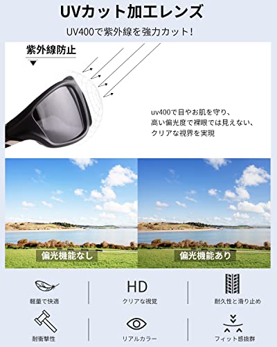 こちらはTR90のレンズを採用し、高性能偏光と紫外線を99.9%カットする効果がある偏光サングラスです。
