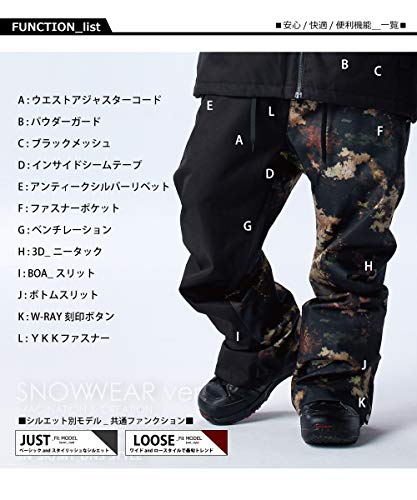 つなぎタイプのスノボパンツは、腰上まであることからパウダーガードの代わりにもなり、激しい動きでも安心の設計。