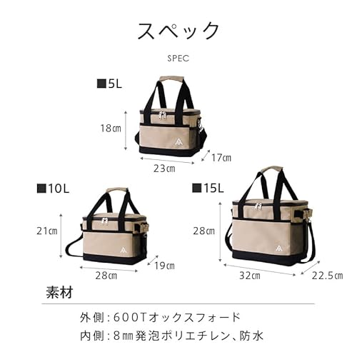 10Lのサイズとなっているので、気軽にキャンプ泊やデイキャンプを楽しみたい方、釣りや海水浴などでも使用可能です。