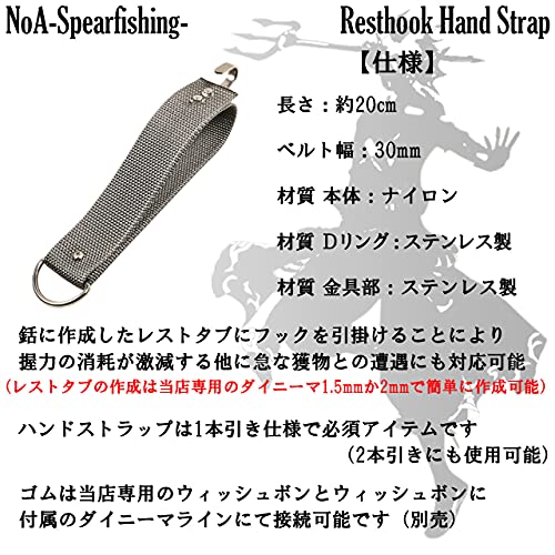 NoAが製造元で、アメゴムがセットになっているレストフック付きハンドストラップです。