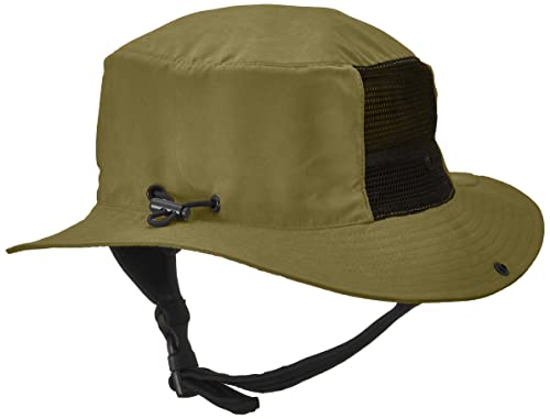こちらは大きなブランドロゴのワッペンがかっこよく、カーキのカラーが大人っぽいサーフキャップです。
