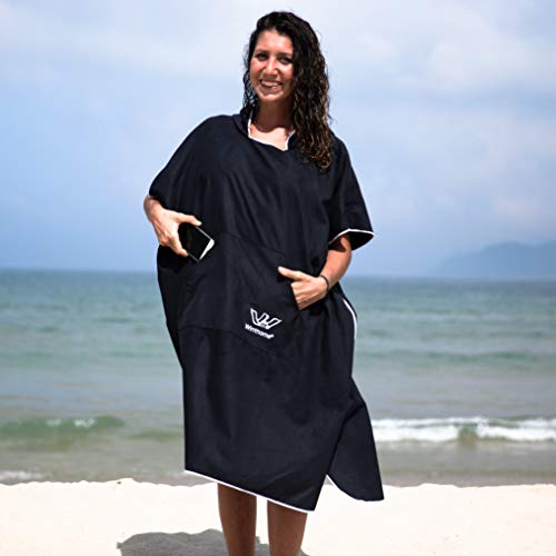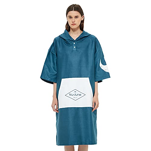 優れた吸水性と速乾性、小物が入る大きなフロントポケットが付いた、Nu-Juneのマイクロファイバー製サーフポンチョです。