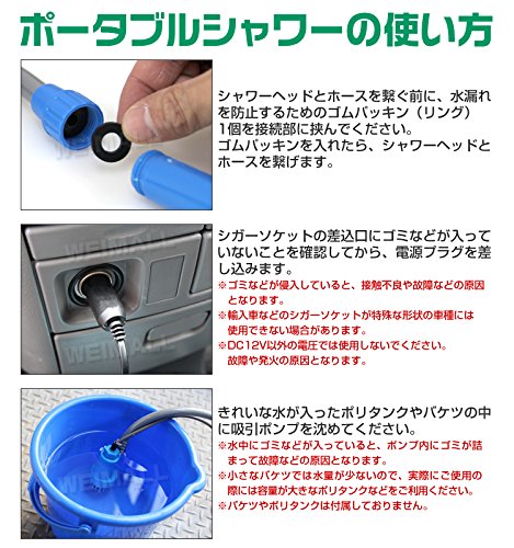 こちらは車のシガーソケットを活用した電動シャワーです。