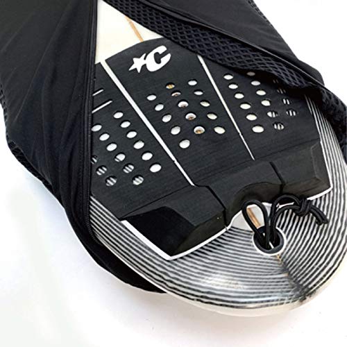 ボードへのフィット感を追求した、無縫製筒状構造を採用しており、さまざまな形状のサーフボードに対応。