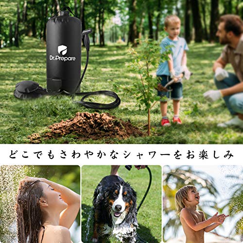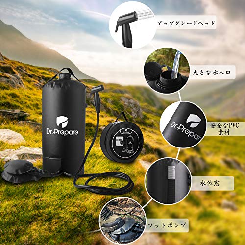 フック付きで吊り下げて使用できるタイプの簡易シャワーで、容量は20リットルです。