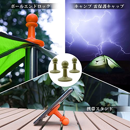 ポールの先端部分に装着することでロープやグロメットが抜けにくくし、強風によるタープの倒壊を防ぎます。