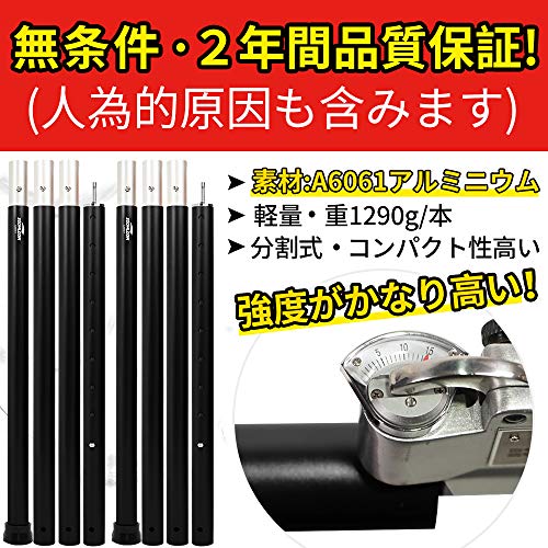軽量で耐久性に優れたA6061アルミ合金を使用したポールとポールエンドキャップがセットになった便利な商品です。