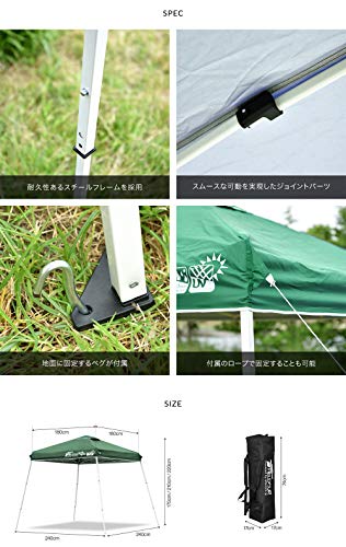 ロープを張って木やペグなどで固定をするタープに比べ、慣れていなくても簡単に設営することができます。