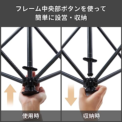 組み立てるときはボタンを持ち上げるだけ、収納時にはボタンを下げるだけで簡単で素早くできます。
