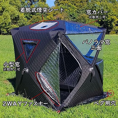 テントは保温性が高いキルティング素材で、窓蓋はマジックテープで簡単に着脱できます。