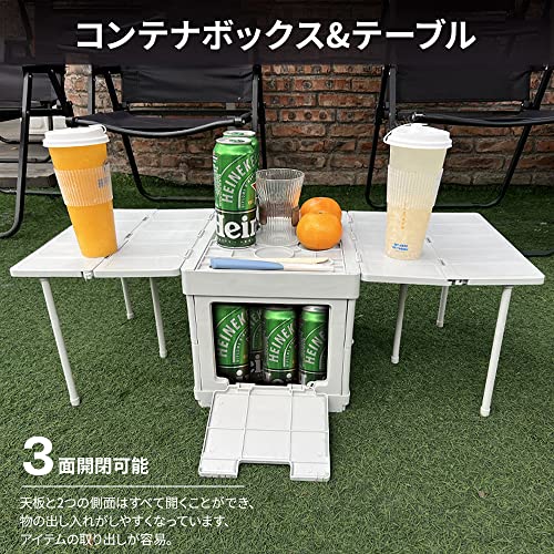 頑丈な収納コンテナにテーブルがついた製品で、ソロキャンプからグループキャンプまで、快適に使用できます。