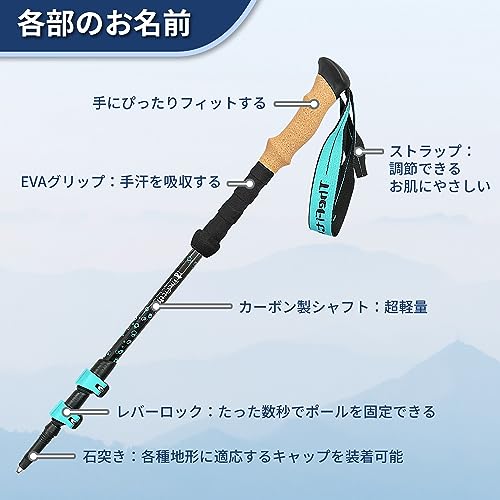 シャフトにはカーボンを使用していますので耐久性には優れており、なおかつコスパが良いトレッキングポールになっています。