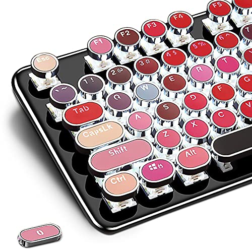 各キーの色がレッドを中心とした色合いとなっており、周囲の目を引きやすいユニークなタイプライター風キーボードです。