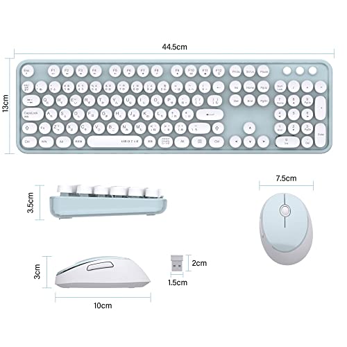 ライトシアンとホワイトの明るい2色構成が可愛らしい、男女問わず使えるデザインの白系タイプライター風キーボードです。