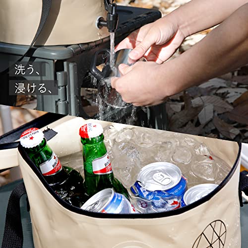 ターポリン製の柔らかな素材で、使用しないときは折り畳んで収納できるので持ち運びにも便利でアウトドアに重宝します。