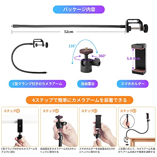 - 5.2 【JEBUTU】スーパークランプ マジックアーム 360度回転 カメラマウント スマートフォンホルダー付属