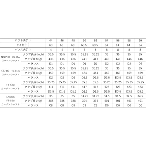 ロフト角(°) 48/ 50/ 52/ 54/ 56/ 58/ 60