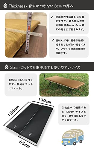 空気満タンで厚さ8cmになり、確かな高さで地面の凸凹や冷気を感じず、空気と特殊ウレタンの優れたクッション性で疲れた身体を癒せます。