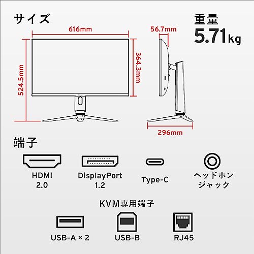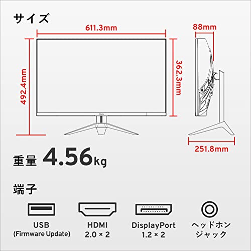 | ASUS TUF Gaming | 27インチ | 61.5×53.5×21.5cm/6.6kg | IPS | 170hz |